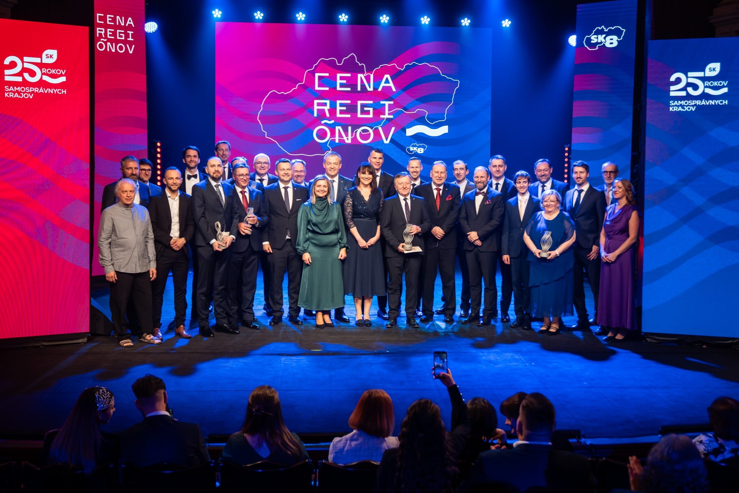 Prezrite si fotografie z tretieho ročníka súťaže Cena regiónov, ktorý sa konal 19. marca 2026 v Divadle Jonáša Záborského v Prešove. Na podujatí sme ocenili finalistov a laureátov v ôsmich kategóriách, pričom sme spoločne oslávili ich výnimočné prínosy pre naše regióny za rok 2025. Nechajte sa inšpirovať momentmi, ktoré zachytávajú atmosféru tejto významnej udalosti.